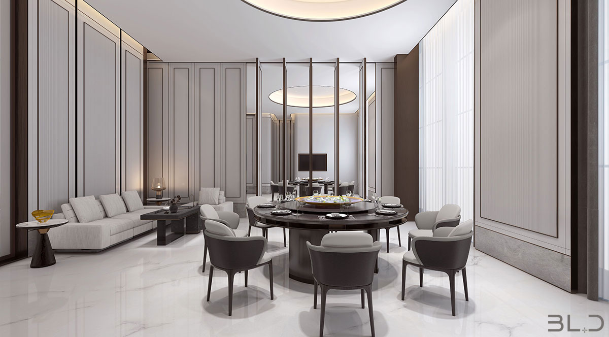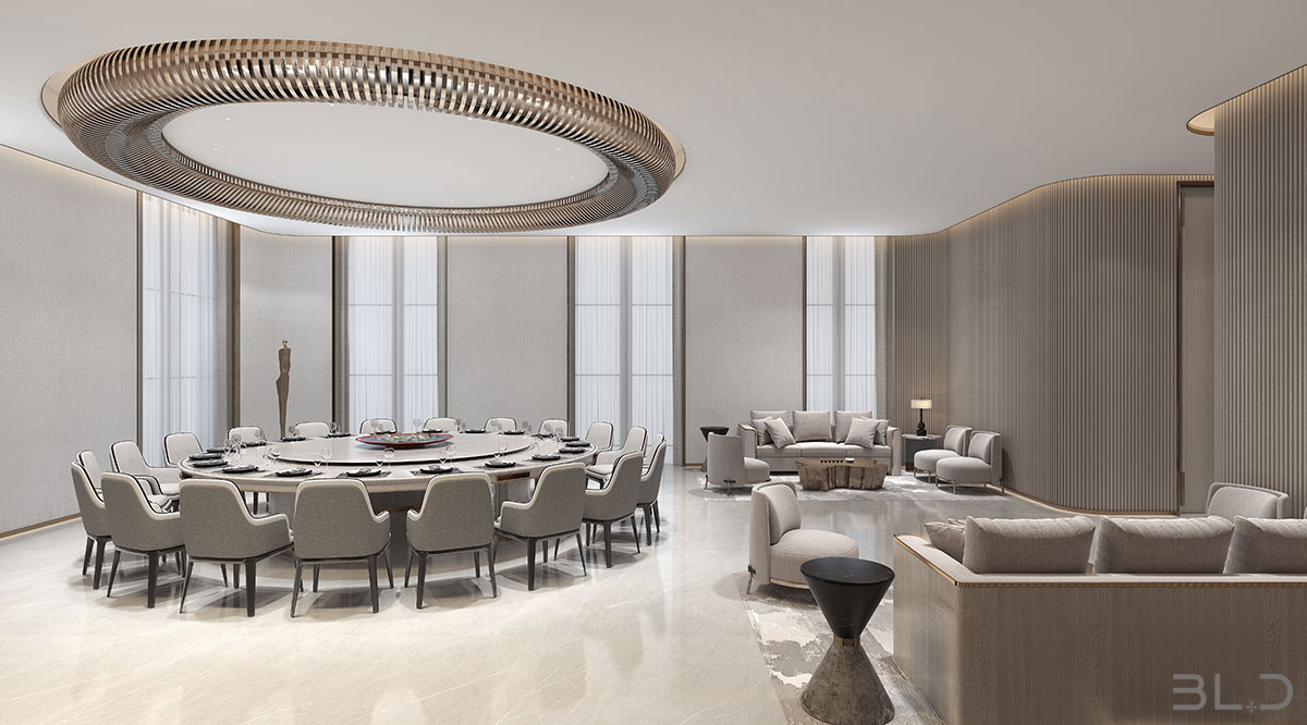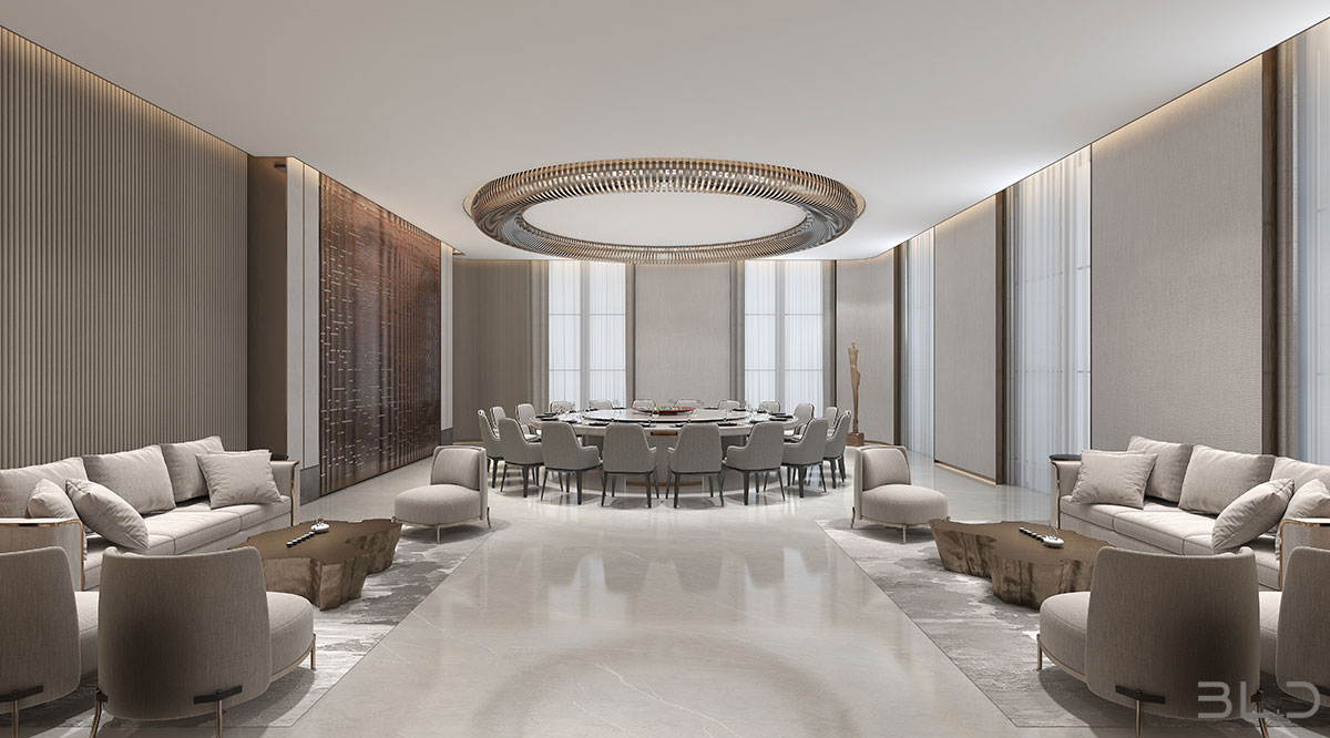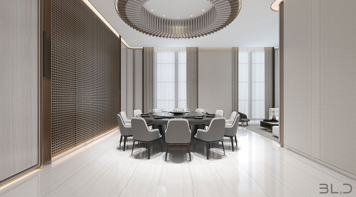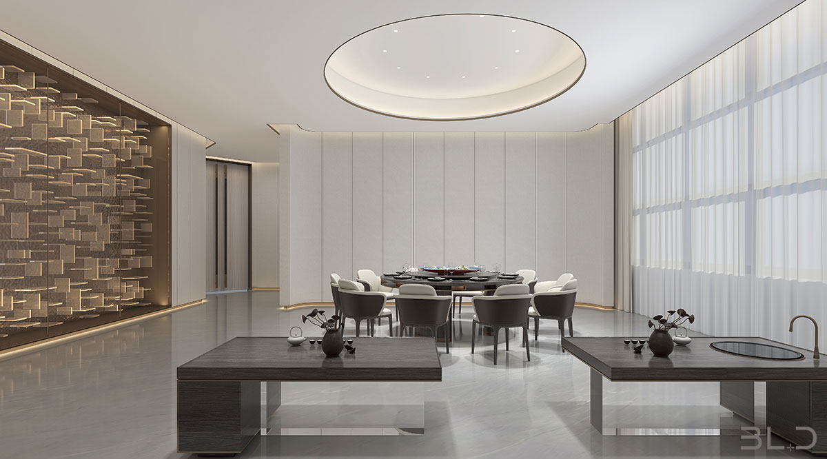 每個(gè)包間風(fēng)格各有不同,或莊重大氣,或通透舒適,或靜默內(nèi)斂,或高雅靈動(dòng)。中式格形設(shè)計(jì),與現(xiàn)代視覺(jué)藝術(shù)融合,打造具有豐富空間層次感的視線關(guān)系,在感受空間的恢弘尺度和禮序感中,體會(huì)古樸含蓄的東方氣象。簡(jiǎn)約東方 的靈魂在氣場(chǎng)、在格局,胸中有丘壑,筆下就有山水。