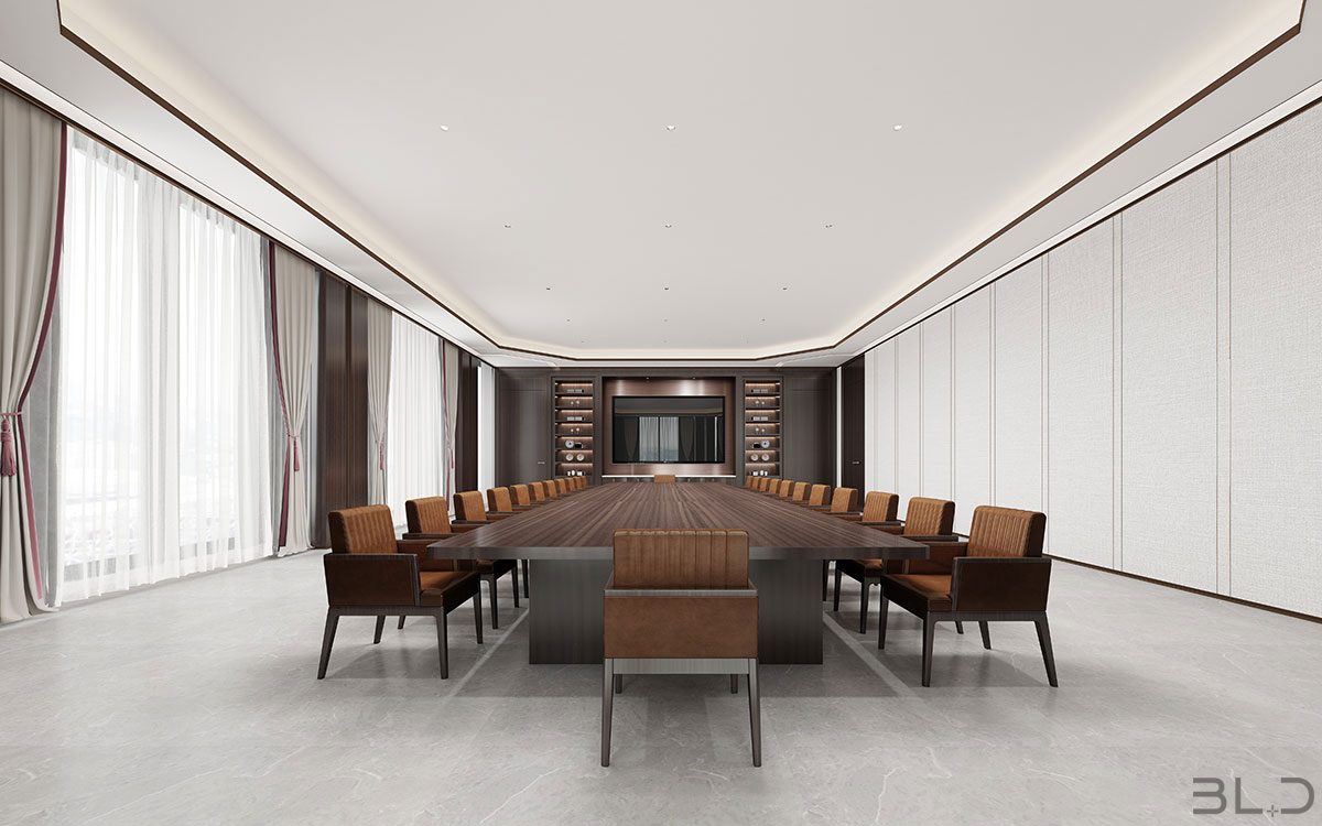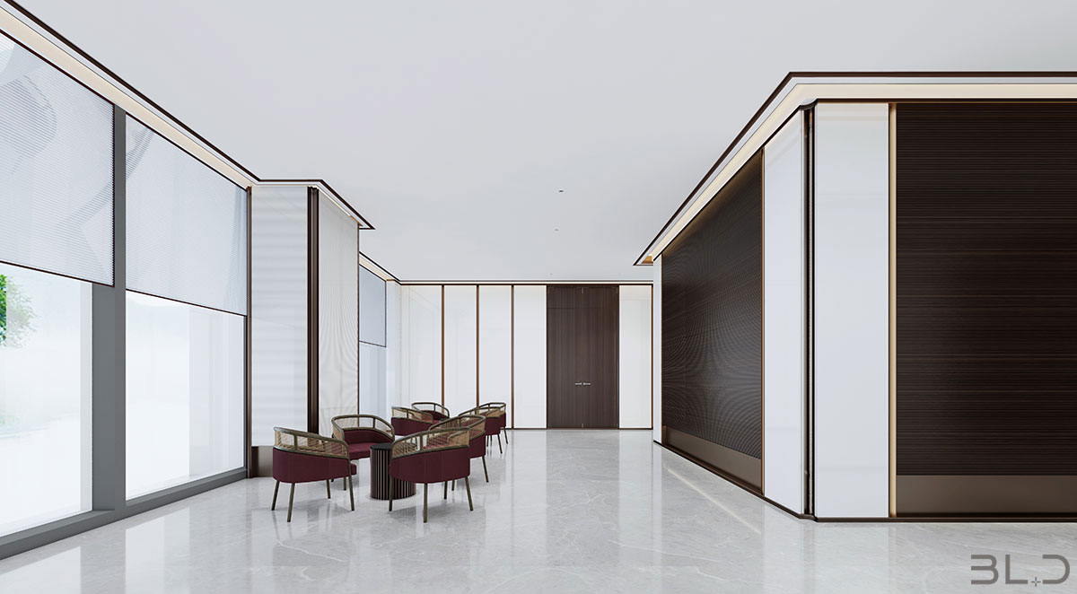 東太湖畔商務中心設計主題是為追求卓越的精英人群打造低調(diào)、雅致的輕奢級商務空間氛圍,商務空間以現(xiàn)代簡約的設計手法,輔以一些靈動的創(chuàng)意元素,讓整個辦公空間彰顯大氣,時尚,創(chuàng)意,有品位之感。在追求更加簡潔 明快、國際化的辦公空間的同時,將當?shù)靥厣幕厝谌氲秸麄€設計中,將形式、質(zhì)感、材料、光影、色彩等要素匯集在一起,創(chuàng)造性的表達空間的品質(zhì)及恒力集團文化精神,拼棄了多余的裝飾和材料的堆砌,著重展現(xiàn)室內(nèi)空間與當?shù)匚幕赝昝澜Y(jié)合。在建筑固有的基礎上,營造現(xiàn)代與文化結(jié)合的國際商務中心。