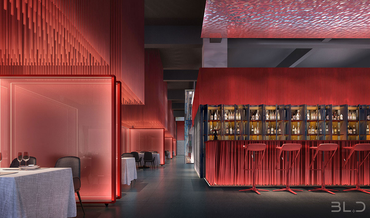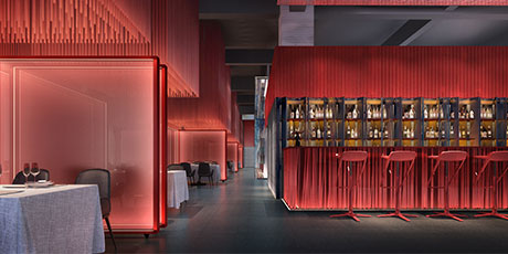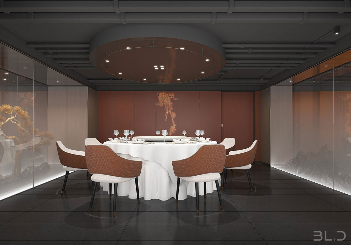 在設計案中,設計師伽馬先生對霧化玻璃、枯山水、紅色樓梯等細節元素的調度與駕馭,信手拈來,合轍押韻。多一分浮夸油膩,少一分寡淡無韻。尊重功用的前提下,拆解品牌意蘊,融入專業設計,接地氣,不拖沓,引導花家怡 園新京菜神魂入位,是設計師伽馬先生“見山是山,見山不是山”之后的從容與沉淀。