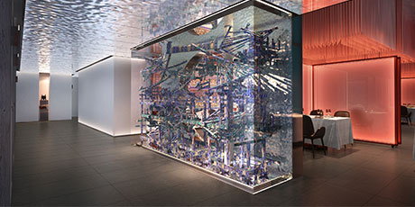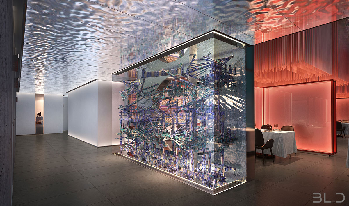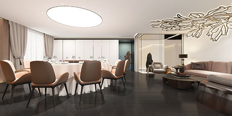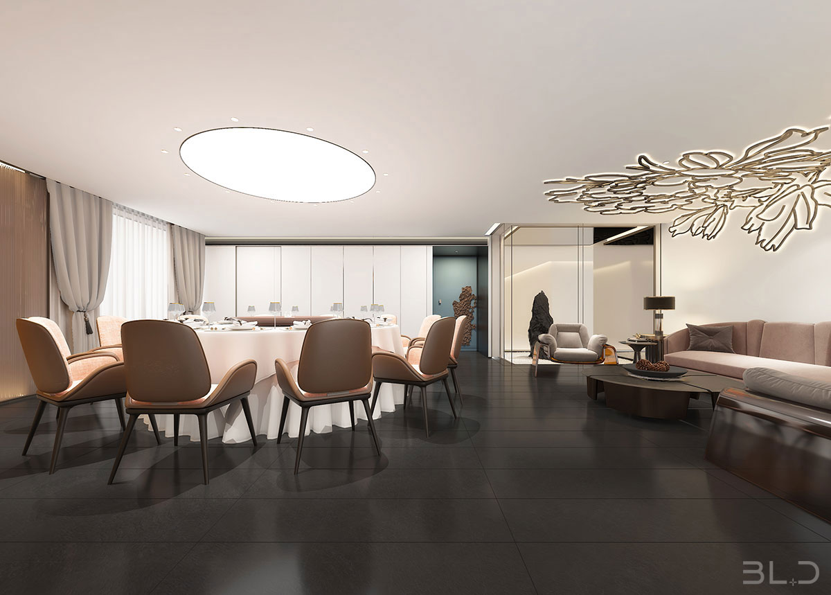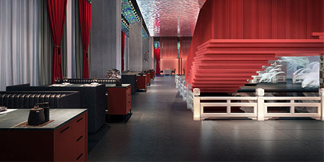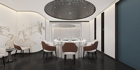 花家怡園(北京順義新國展新址),整體空間設計以“花”為主題,串聯多種中式元素輔助陳設品牌概念。花在設計元素中,更像武俠小說中的《洗髓經》,唯有高手方能將其駕馭。花概念在設計師伽馬恰到好處的分寸感下,演化 成對歲月與中式美學的致敬。在設計風格上,傳承感、現代感、功能感,構成堅不可摧的審美黃金三角。被多次強調使用的鏡面折射,帶來虛實兩重空間。設計配色啟用中國紅、玄天白、以及墨黑,營造三度視覺沖擊。設計師伽馬先生在設計中,擺脫傳統中式空間的窠 臼,隔絕傳統餐飲的喧囂,攜簡約清朗的設計語言,書寫了花家怡園的新氣質。