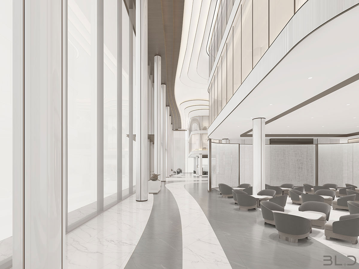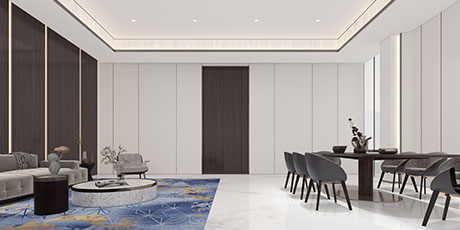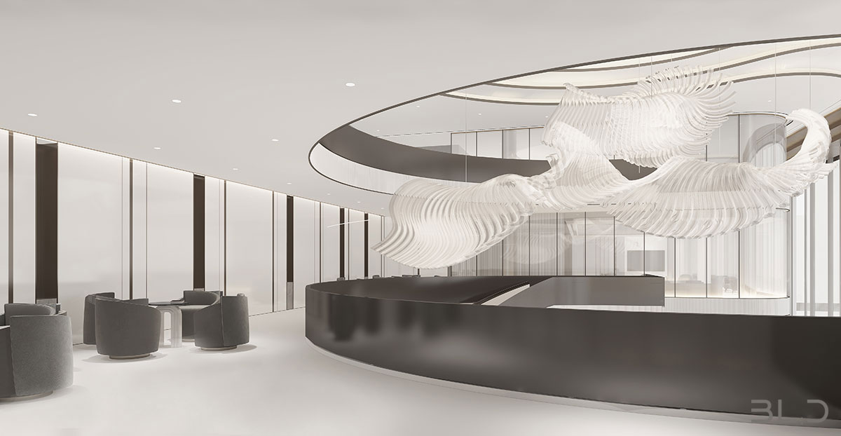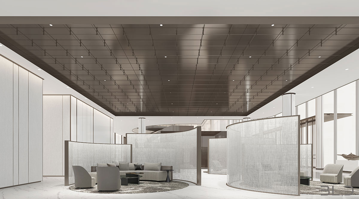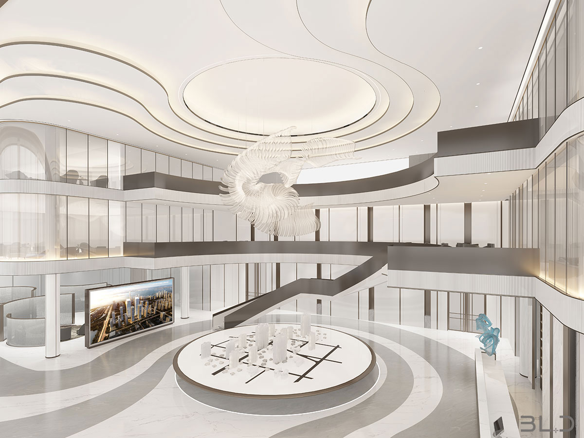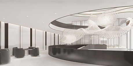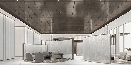“唯天下至誠,為能盡其性。”伽馬先生深耕設計領域多年,在項目設計中善于融入對企業品牌與商業邏輯的理解,用設計的語言代替企業品牌與消費者交流。售樓處大堂內的藝術裝置,光影流轉,將“光”與“雨”的意境鋪陳, 稀釋了大空間帶來的空曠感。半透光弧形隔斷,將動靜區域劃分,為洽談區營造一定私密性。行動路線,接待、展示、洽談、簽約,動線一氣呵成,貼合銷售路徑,輔助空間使用功能延展。內部辦公區域線條簡潔,功能聚焦。