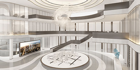 項目所處的地塊位于蘇州吳江太湖新城,是吳江近幾年最大體量的商業地塊。樓盤整體業態囊括商業、公寓、寫字樓、研發等,是蘇州灣核心區域內的又一地標性項目。對于如此大體量又極具戰略意義的項目售樓處,開放商對于設 計師及團隊的甄選可謂慎之又慎。